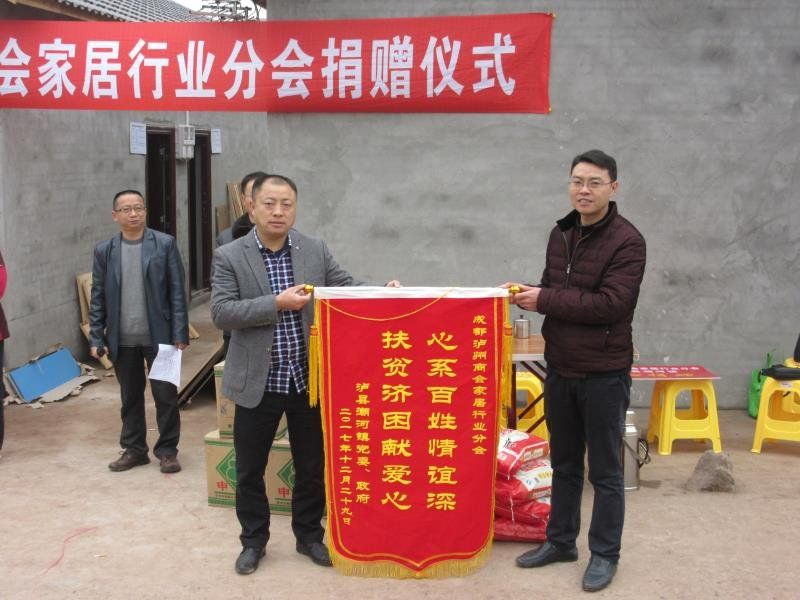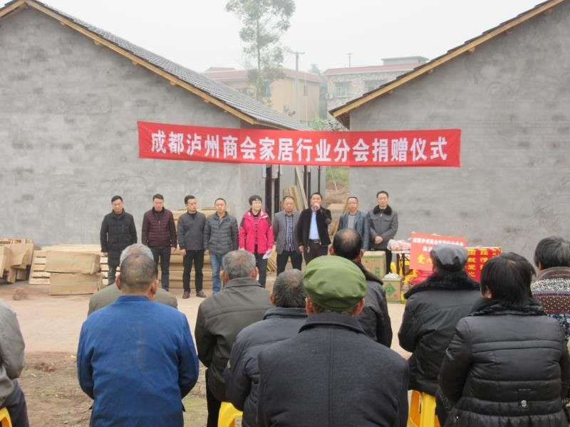 2017年12月29日,成都泸州商会家居行业分会到泸县家乡潮河镇桂凤村开展了“送温暖、献爱心”帮扶济困活动,向村民们带去了帮扶物资和新年诚挚的祝福。