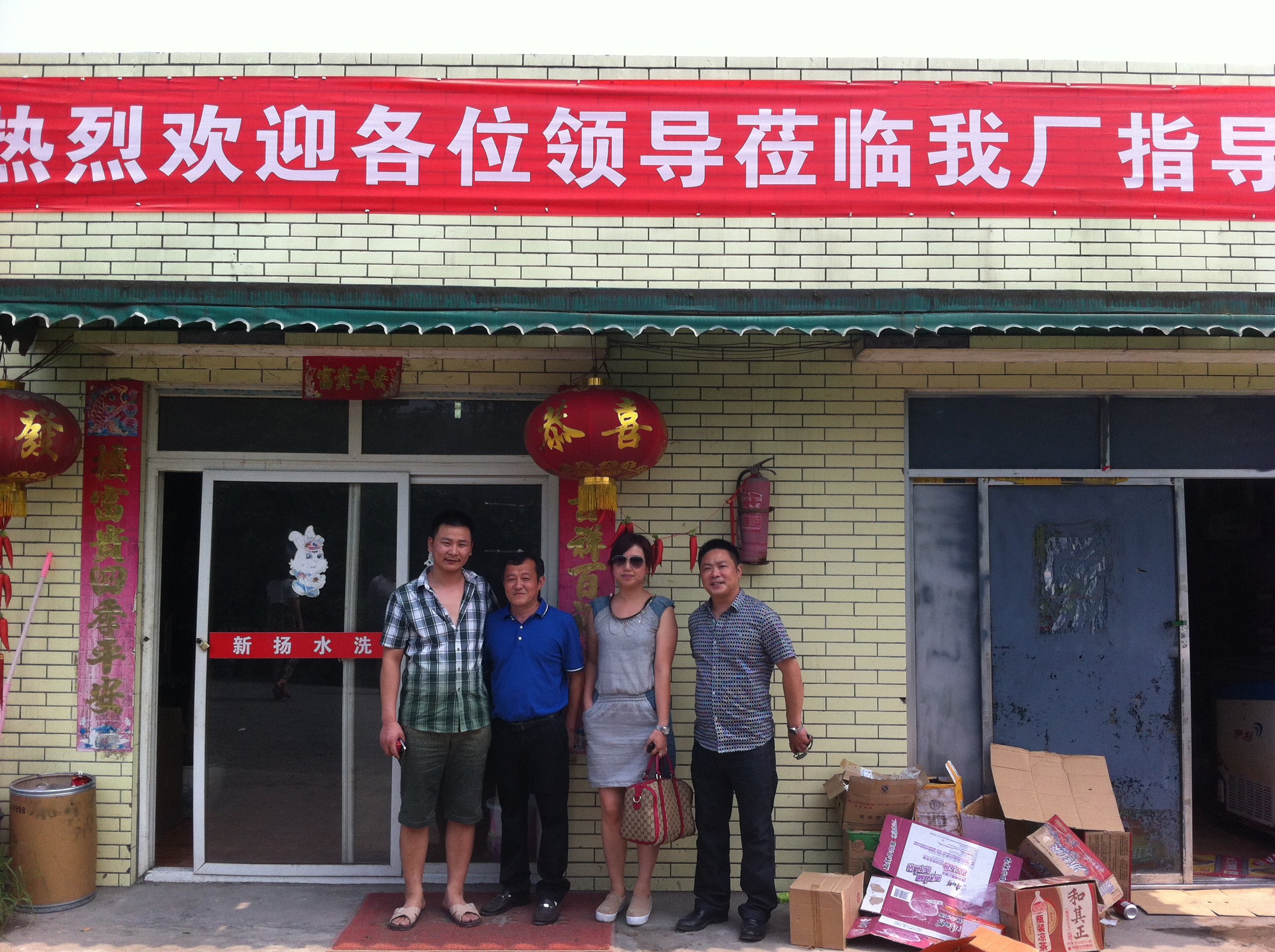 会长李子茂、常务副会长古光永、监事长李赟与新扬洗水厂厂长杨树林合影