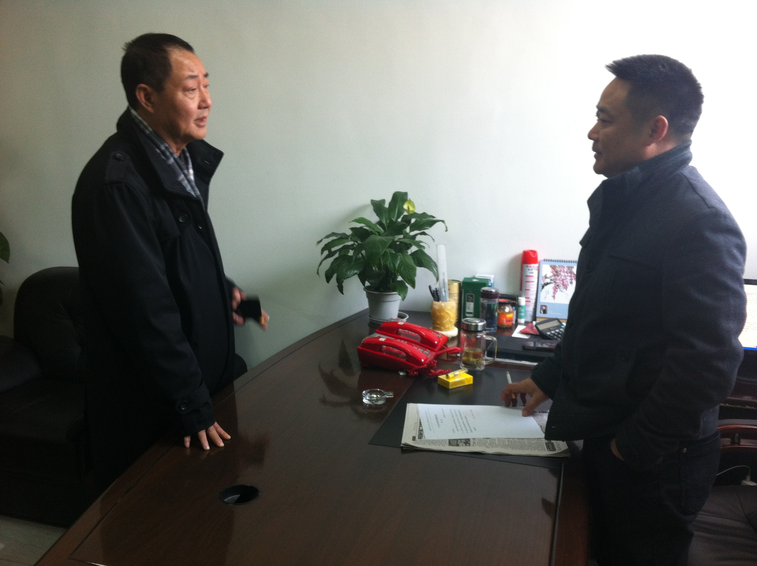 专职常务副会长李福州同常务副会长古光永讨论春节放假细节