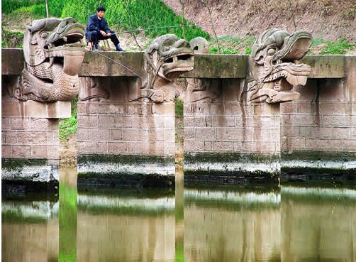 世界最长的石刻龙建筑群位于赤水河南岸茅习公路边,与吴公岩“美酒河”遥相对应。共有石刻龙四条,每条长192米,共768米,既是公路护栏,又是石雕艺术,工艺精湛,形象生动,堪称西南龙刻之最,1999年载入“世界基尼斯”。