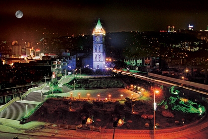 泸州钟鼓楼位于泸州城区北部。高20米,4层砖结构,楼顶5个尖塔,底呈正方形,边长6.45米,明嘉靖十六年(1537)泸州兵备佥事薛甲主持修造,主要作报时、报警之用。1927年,邑人税西恒向德国西门子公司购回大型自鸣钟4座,在顶楼4面安装,指针同时转动,自动报点,声及远郊。现环绕钟鼓楼建小游园,面积2100平方米,投资900多万元,有绿地、园林小品、小型喷泉等。