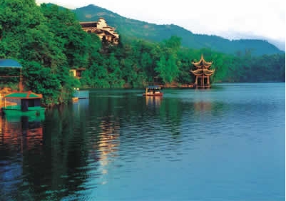 被誉为“西蜀玉珠”的凤凰湖,森林覆盖率达89%,堪称“天然氧吧”。大自然的神奇孕育着美丽的凤凰湖景区。环湖构造出6个如诗如画的迷人景观。拥有水面157万平方米,蓄水量达1540万立方米,湖长(主航道)9358米,周长30700米。湖中大小岛屿10余座,湖泊九弯十八曲,由48条汉河密布而成,向群山深处延伸而去,显得格外清幽深邃,神秘莫测,湖岸边层峦叠嶂,松、杉、翠竹、鲜花倒映在水中,相映成趣,天水一色;湖中水鸟、野鸭、白鹤成群结伴,闲游嬉戏;岛上云集着怪竹奇木、佳兰芳卉,争相斗艳,野猪野兔时而出没,山羊山鸡栖息群居,田园风光、生态植被蕴含着极为丰富的对人体大有裨益的负氧离子;千年古渠黄龙堰,穿越险峻的峡谷陡崖,让你不得不惊叹古人的巧夺天工;千奇百状的赫红色怪石在立石硬一字排开,形成独特的石林奇观;百年豪宅黄家山建筑精美,雕刻精湛,乃川南罕见;有小竹海之称的森林公园,微风轻拂,绿波荡漾,那里有数百个石狮,雄姿英发,千狮百态,好似人间仙境的狮子方队;融飞天瀑布,深潭洞宫为一体的烟子洞,两山夹峙,万千湍流,气势壮观宏大,仲夏十里之外可闻雷鸣瀑布声,李白当年夜宿清溪河,诗兴大发,曾有“夜发清溪向三峡,思君不见下渝州”的千古绝句;山形似龙,横卧群山之中的“川龙山”昂首挺胸,龙盘虎距,展望酒泸州,让游人不得不感叹大自然的神奇造化。