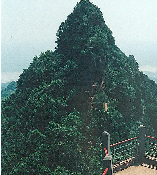 海拔649米,不算高,但有浅丘低山的铺垫陪衬,便有了拔地而起的高耸之势。