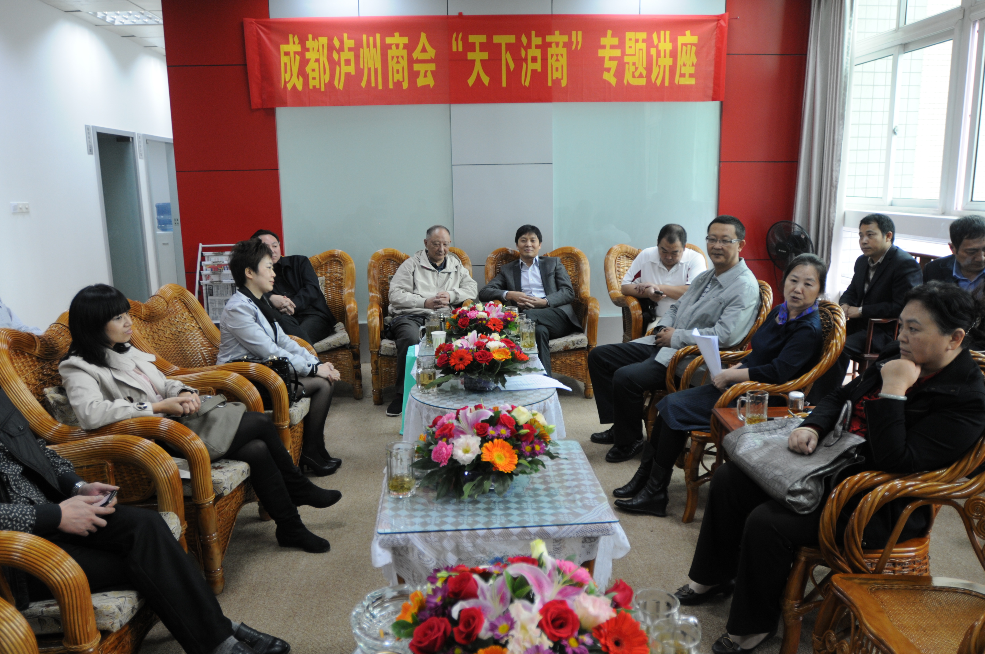 由原《川南工商》主编、泸州地方史研究专家赵永康副教授主讲的“天下泸商”专题讲座,2011年10月20日,在雄龙实业二楼商会办公室举行。讲座由商会秘书处牵头组织,泸州市政府驻蓉办副主任高朝平,会长林代湘、常务副会长李子茂、胡小平,副会长巫德刚、张帮才、张金权,监事长田学成,部分会员代表及公室人员,共计48人出席了会议。