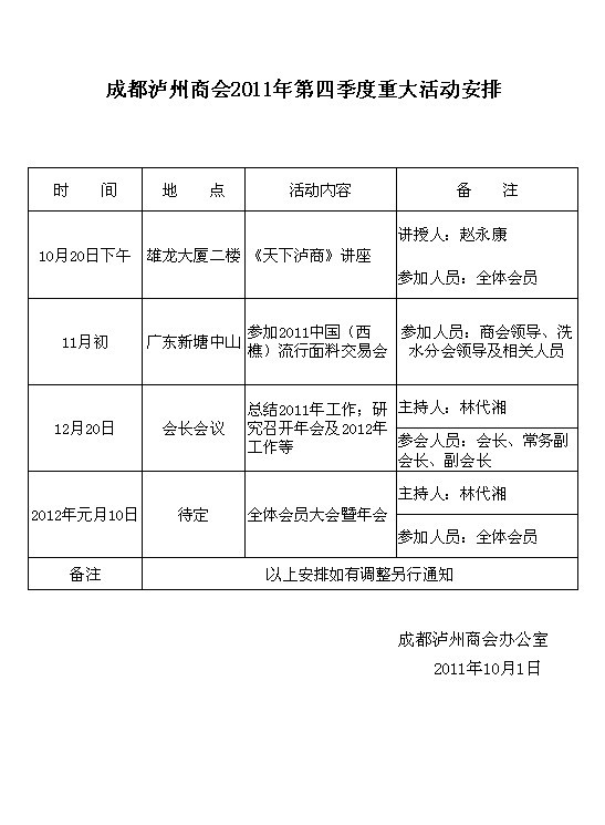 附:2011年第四季度重大活动安排