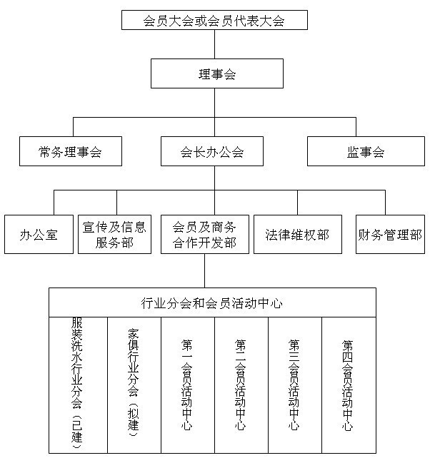(一)、商会会员大会或会员代表大会是商会的最高权利机构,理事会、常务理事会依次行使相应权力。商会日常工作由会长办公会议决策执行。