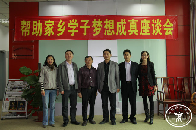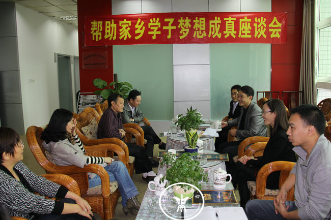 参加此次座谈会的有“帮助家乡学子梦想成真”的捐助人——成都泸州商会常务副会长、投资公司总经理、成都国美纺织有限公司董事长胡小平;成都泸州商会常务副会长、洗水分会会长李子茂、商会常务副秘书长刘敏及办公室人员;胡总家乡泸县石桥镇党委书记王小兵、副书记曾有会、石桥镇人民政府副镇长艾秀全。