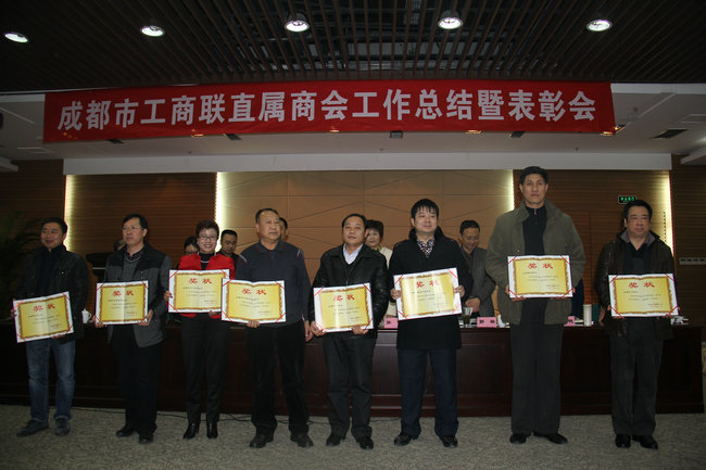 会议由成都市工商联副主席孙光泽主持并作2012年度工作总结,副主席廖冬雪宣读2012年度直属商会获将名单。