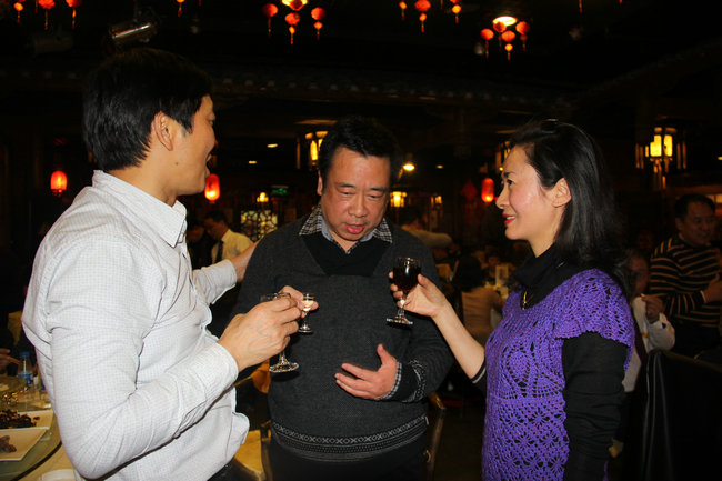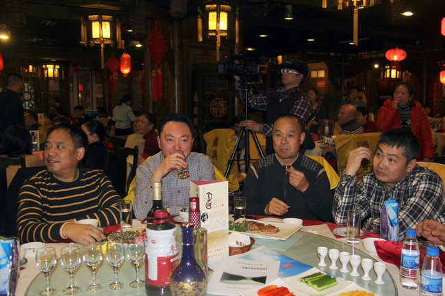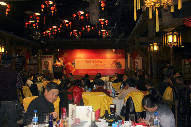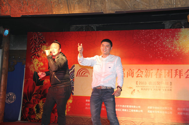 团拜会中,共同祝酒,与会者们一边用餐,一边欣赏精彩纷呈的文艺表演。成都泸州商会常务副会长巫德刚也登上舞台,与歌手同唱一首故乡的歌,歌声激扬浓浓的泸州乡情,团拜会在喜悦与祥和中圆满结束。