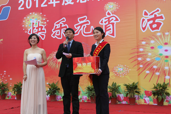 在整个文艺演出中,间插丰厚的礼品抽奖,由领导抽取的一、二、三等奖,把元宵团拜会的气氛推向了高潮。