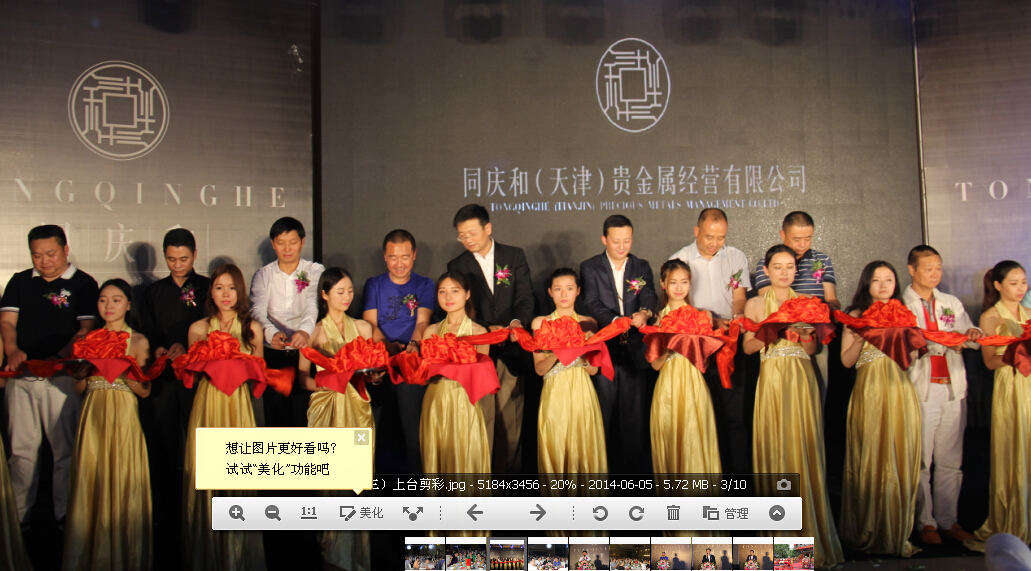 随后,林代湘会长及其他十余位嘉宾上台为同庆和(天津)贵金属经营有限公司的开业剪彩,标志着同庆和(天津)贵金属经营有限公司的正式落成。
