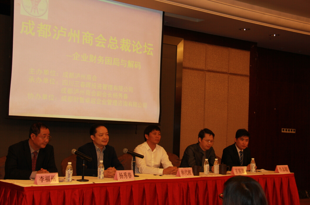 10月25日,由成都泸州商会主办、成都泸州商会副会长单位四川三春晖投资管理有限公司及其董事长杨秀春先生承办、成都财智卓越企业管理咨询有限公司协办的成都泸州商会总裁论坛在成都怡东国际酒店圆满落幕。论坛邀请到了原西门子财务总监、上海财经大学MBA学院讲师、清华大学财务总监班特聘教师王宪徳专家做题为“老总的财务思维——企业财务困局与解码”的主题讲座。本次论坛吸引了成都泸州商会做实体经济的会员朋友、企业家老总、企业财务人员及玉琢会部分女企业家等一百余人参加。论坛由商会常务副秘书长李福州主持。