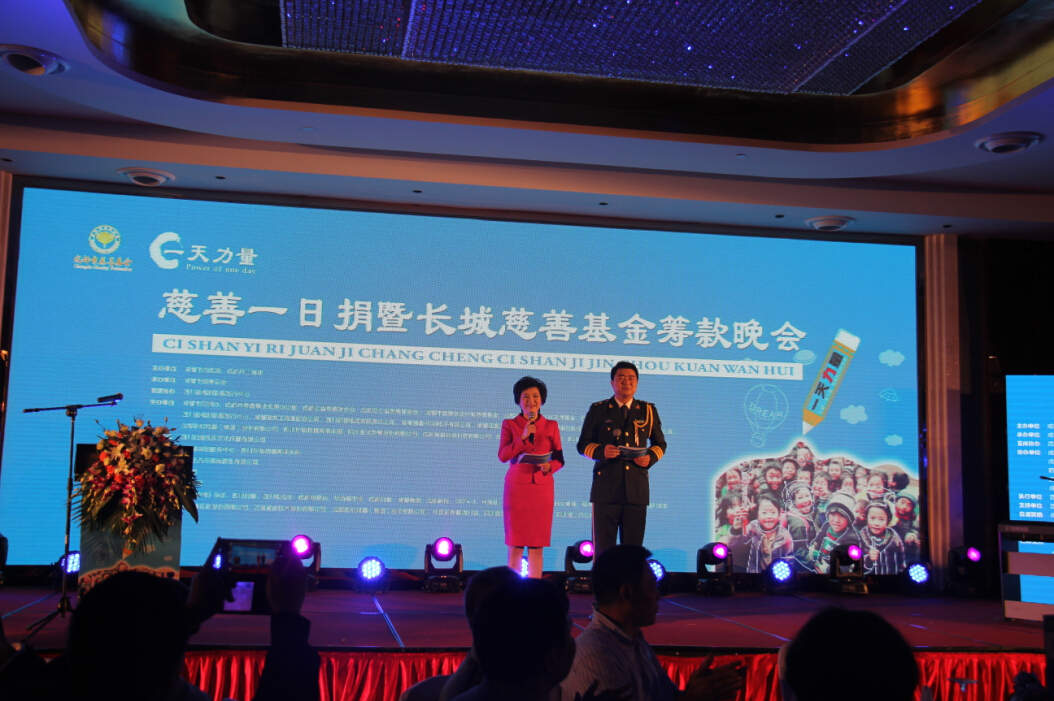 慈善一日捐活动,提倡个人捐赠一天的经济收入的善款,为构建和谐社会贡献力量。“举办本次筹款晚会旨在动员社会各界积极参与慈善活动,人人都能捐赠一天的工资收入或者捐赠一天的时间为慈善贡献一天的力量。同时,也是为长城慈善基金筹款,支持国防和军队建设,帮助有需要的现役、退役官兵及家属共同实现中国梦和强军梦。”成都市政府副秘书长覃文林呼吁各爱心企业、爱心人士继续投入关注和热情,进一步支持成都公益慈善事业,关心帮助更多需要帮助的群体,为成都双拥和慈善事业贡献一份力量。