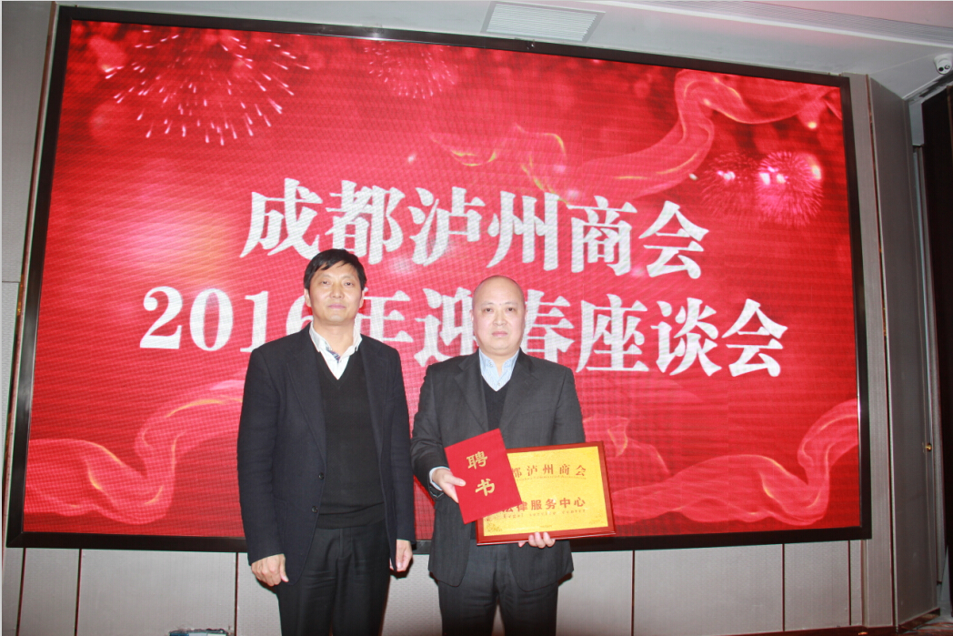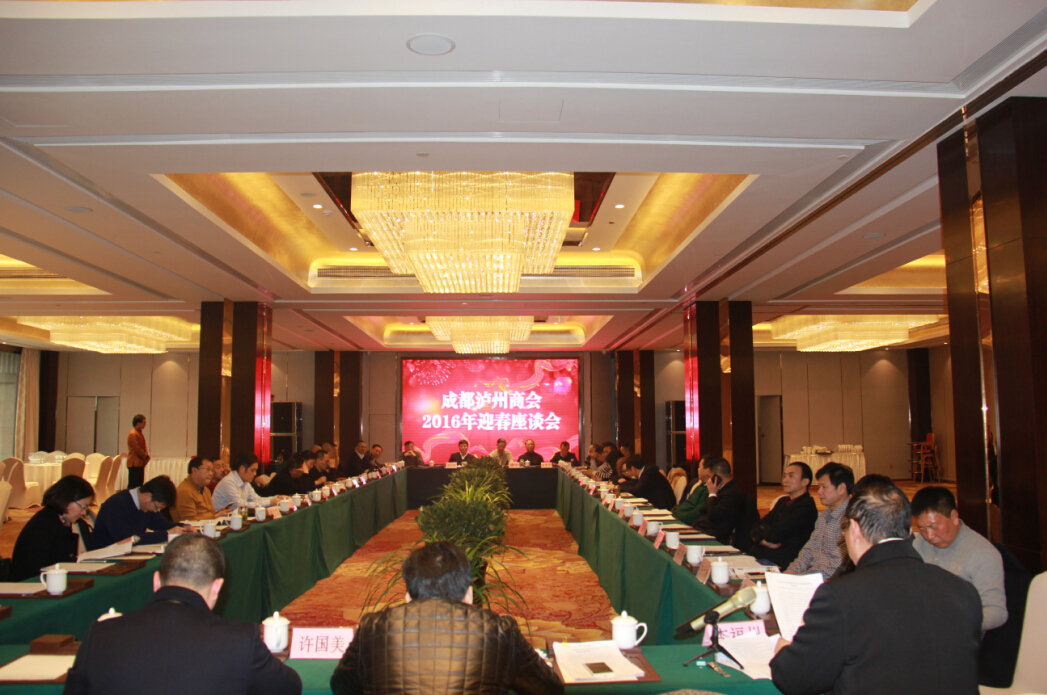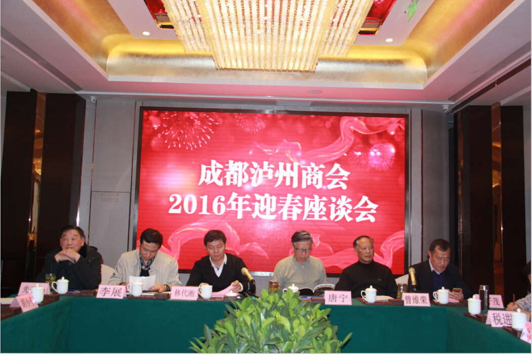 1月8日下午,成都泸州商会2016年迎春座谈会在副会长单位成都尊悦豪生酒店隆重举行。成都泸州商会顾问唐宁、先开金、曾维荣、会长林代湘及全体理事会成员60余人参加了会议,成都市工商联秘书长李展、会员处主任科员胡红彬也亲临会场指导工作。会议由商会常务副会长兼党支部书记李子茂主持。