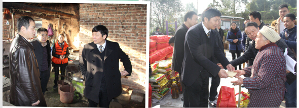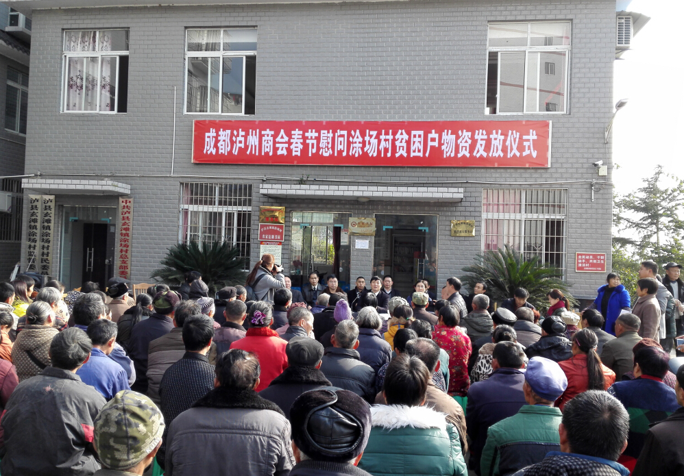 为积极响应党中央“精准扶贫”工作精神,按泸州市委市政府“百企联百村”扶贫工程活动安排,我会于17日上午到泸县玄滩镇涂场村进行了实地慰问,并举行了春节前慰问品的发放仪式。我会以林代湘会长为首的数十位副会长参加了当天的慰问活动,泸州市工商联副主席甘立祥、泸县工商联主席杨开春、副主席张红等各级领导也亲临现场参与了慰问活动。
