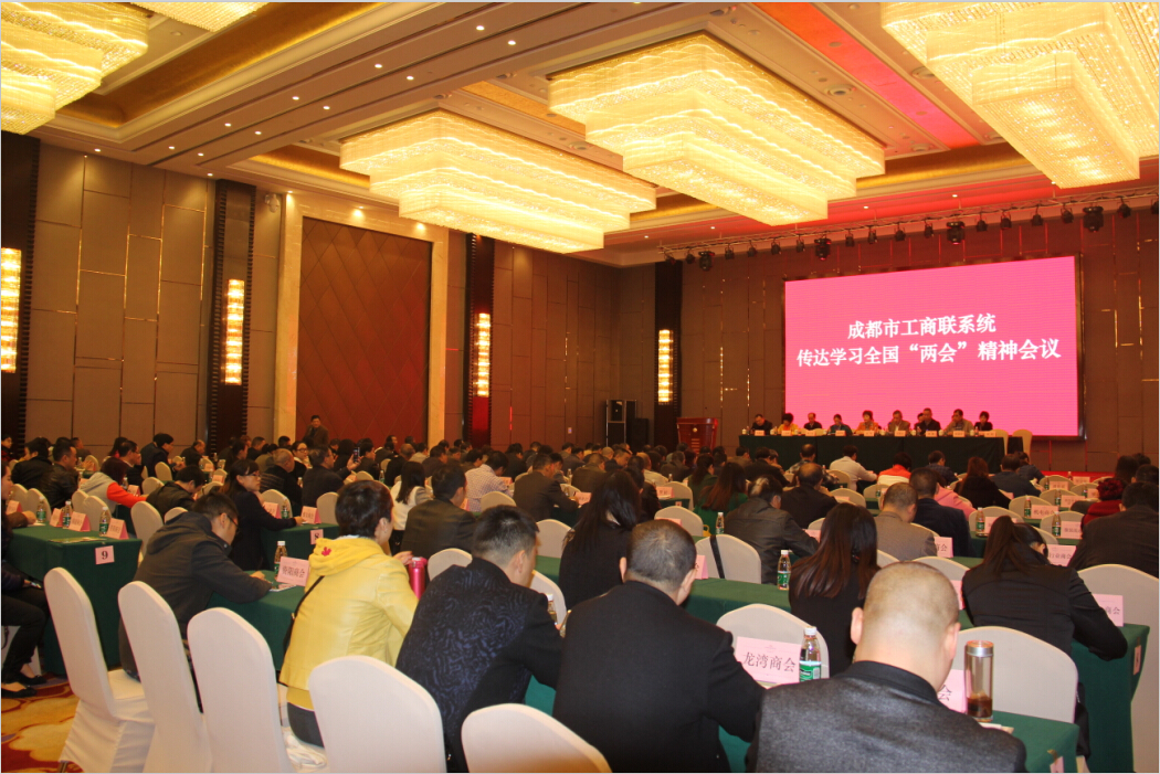 为认真贯彻落实全国“两会”精神,3月21日下午,成都市工商联召开全市工商联系统全国“两会”精神传达会,成都市工商联主席孙明等市工商联领导、区(市)县工商联主席、党组书记、各直属商会会长、秘书长及机关全体干部等参会。我会常务副秘书长李福州代表商会到会学习,会议由成都市工商联副主席温莉艳主持。