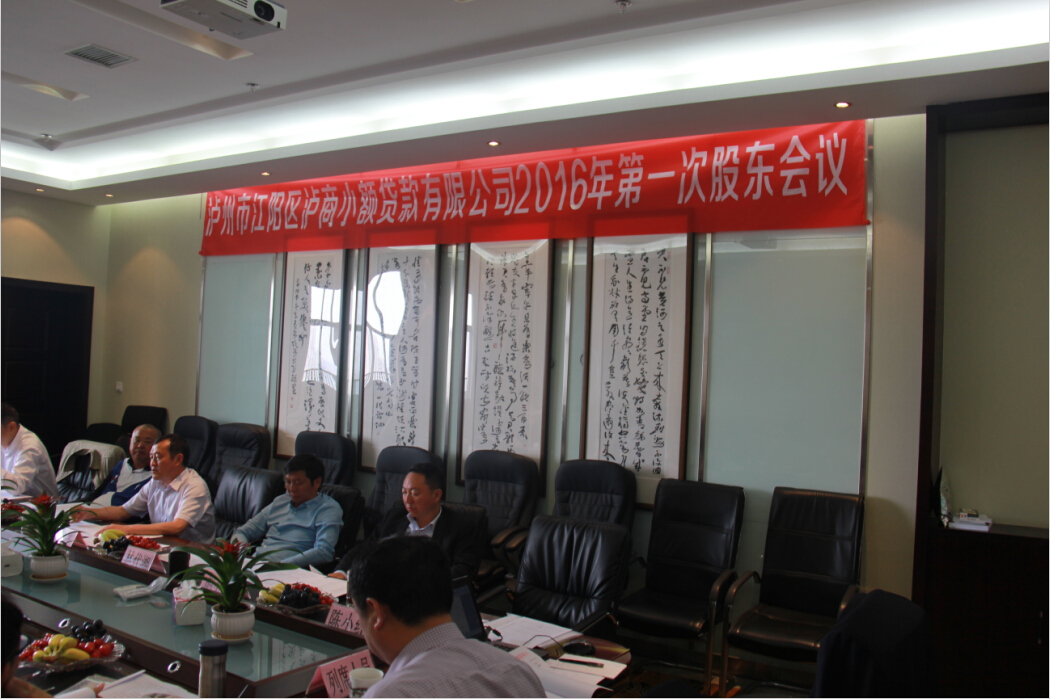 4月26日,泸州市江阳区泸商小额贷款有限公司2016年第一次股东会议在商会会议室召开,泸商小贷公司董事长、商会常务副会长李子茂主持会议,会长林代湘、常务副会长胡小平、杨平、副会长伍户钢、聂洪、石美全等股东参加了会议。