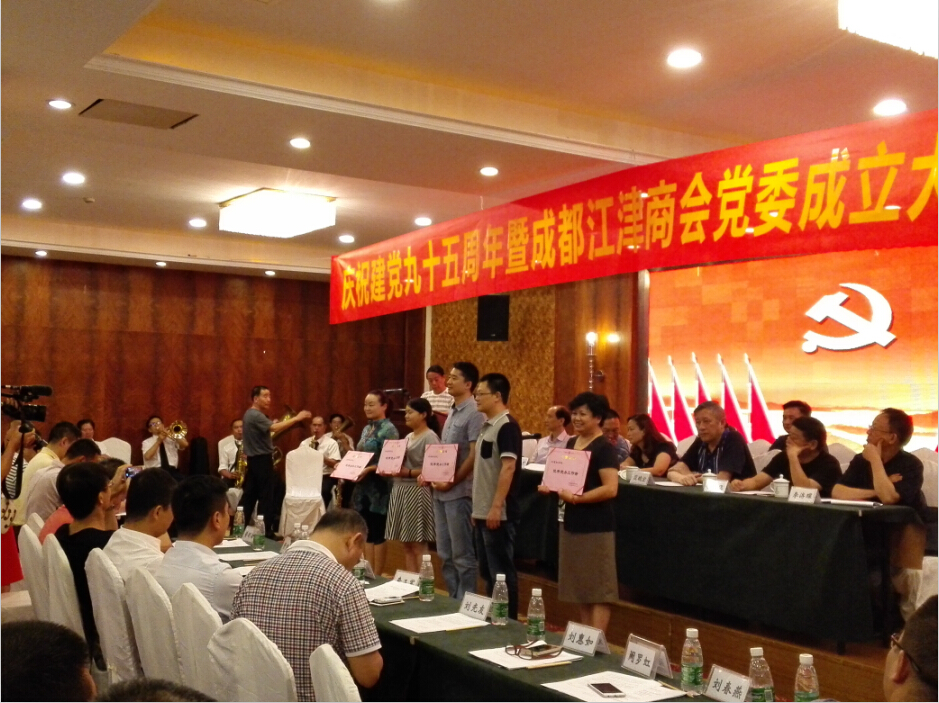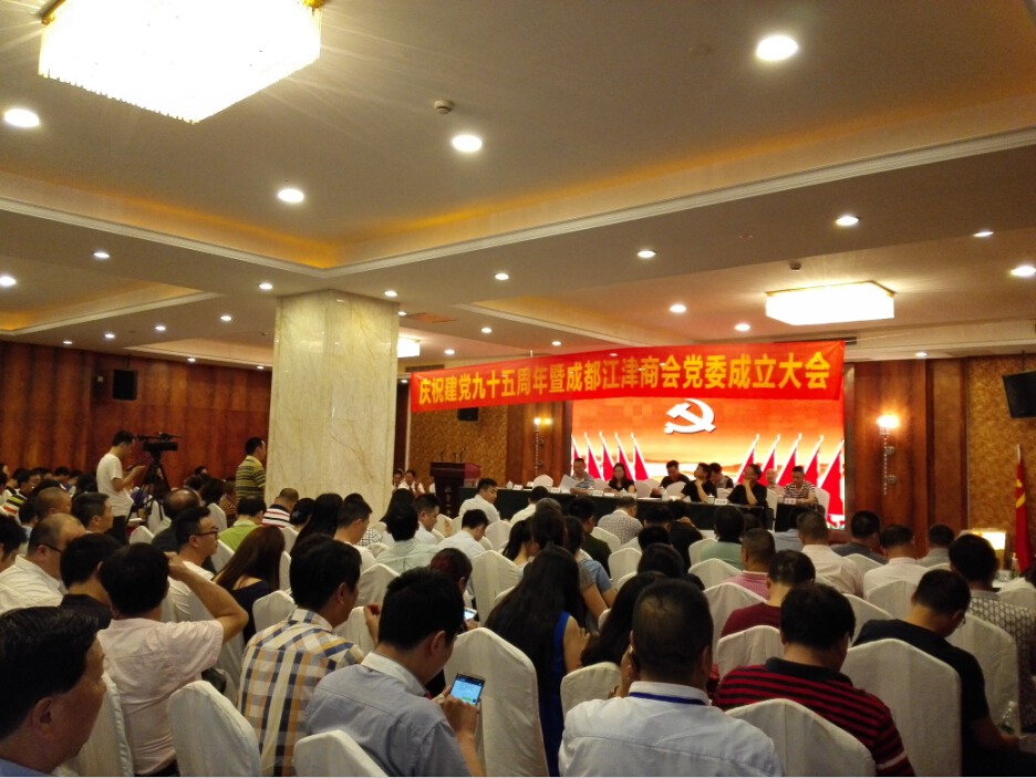 6月28日下午,为庆祝中国共产党建党95周年,成都江津商会在迎宾一号酒店举行了隆重的庆祝活动,成都江津商会党委成立大会也同时举行。江津、成都两地工商联、党建工作有关领导、江津商会全体党员、各兄弟商会等近200人参会。