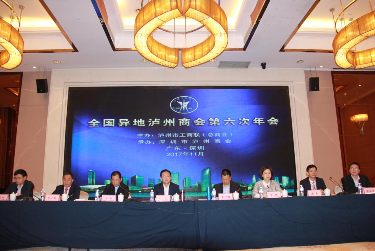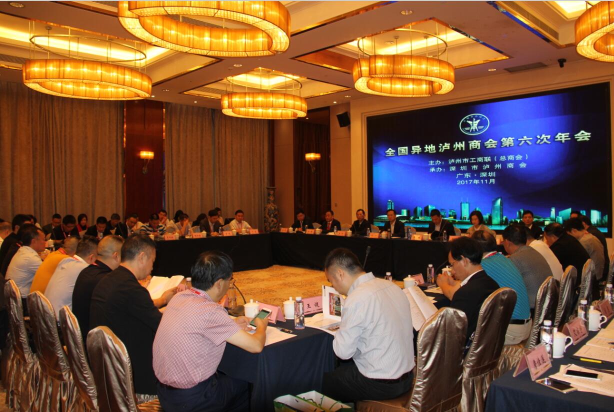 11月9日,全国异地泸州商会第六次年会在深圳麒麟山庄隆重召开。会议由泸州市工商联(总商会)主办,深圳市泸州商会承办。会议的主题是深入学习贯彻党的十九大精神,加强“泸商”品牌建设。中共泸州市委常委、市委组织部部长、统战部部长徐斌出席会议并讲话;市委统战部副部长、市工商联党组书记王华,市委组织部副部长、市人才办主任曾姸,四川省工商联副主席、市工商联主席、总商会会长喻小春,市工商联副主席甘立祥、廖泳清等市级相关部门领导及区、县工商联负责人出席会议;深圳市工商联党组成员、副主席李少雄应邀出席会议并致辞。来自北京、成都、重庆等14个异地泸州商会会长和西藏、青海等10个异地泸州商会筹备组的负责同志及企业家代表共150余人参加会议。