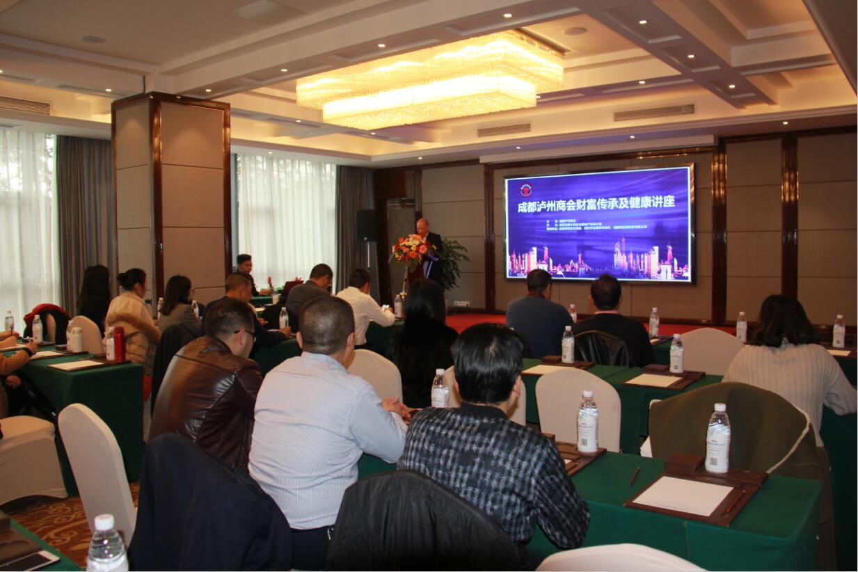 11月30日下午,由成都泸州商会主办、商贸流通服务小组及金融地产实体小组承办的“财富传承及健康讲座”在尊悦豪生酒店举办。讲座由商贸服务流通小组组长屈景泉主持,商会执行会长赵福全作总结。商会部分会员、会员企业创始人、股东、高管、家族核心成员等人员参加了讲座。