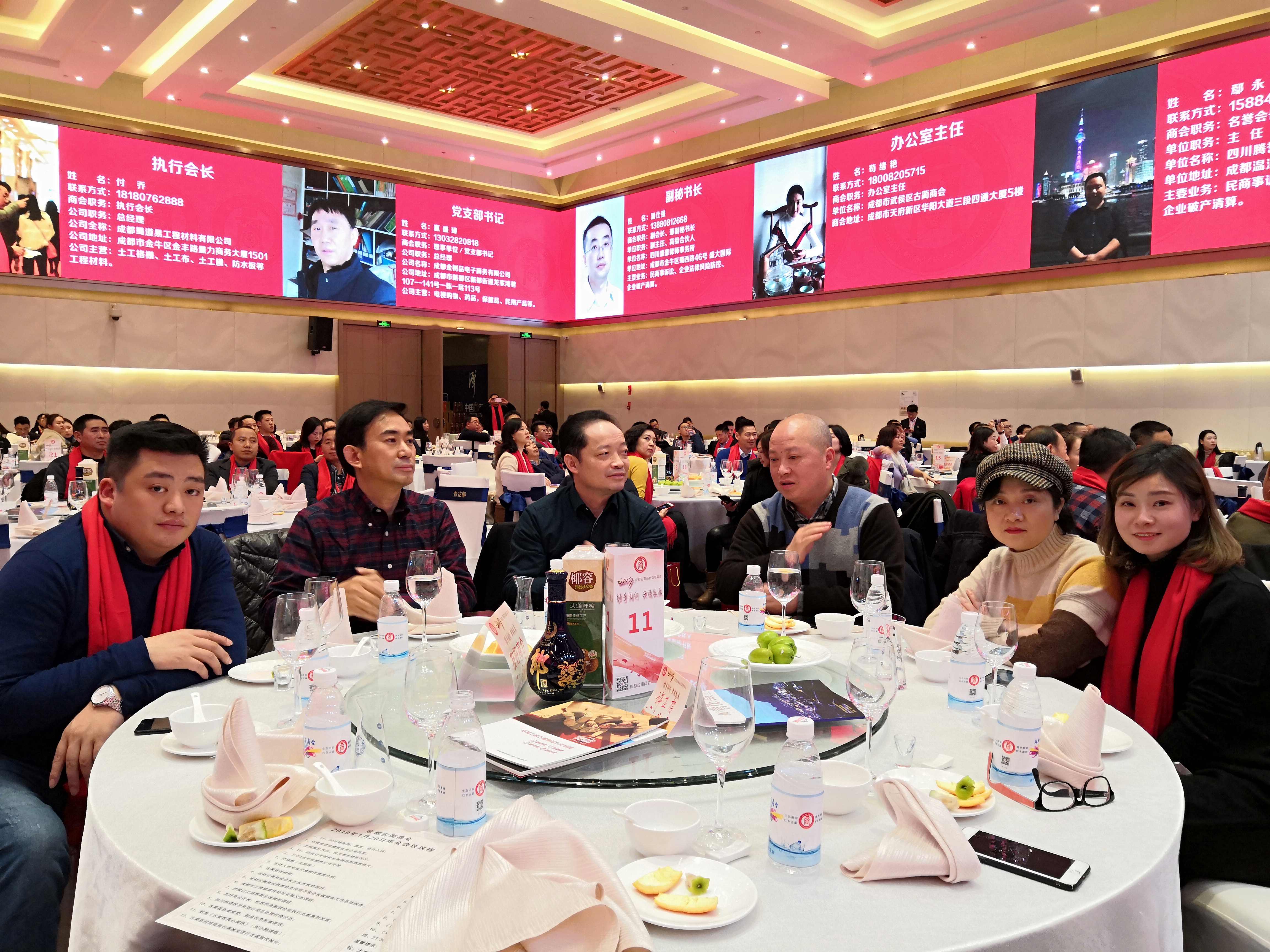 年会特邀四川电视台主持人马媛,胡胖胖主持。年会举行了党支部授牌仪式、法律顾问签约仪式,并分别为2018年度优秀会员奖、2018年度爱心奉献奖、2018年度突出贡献奖获得者颁奖。
