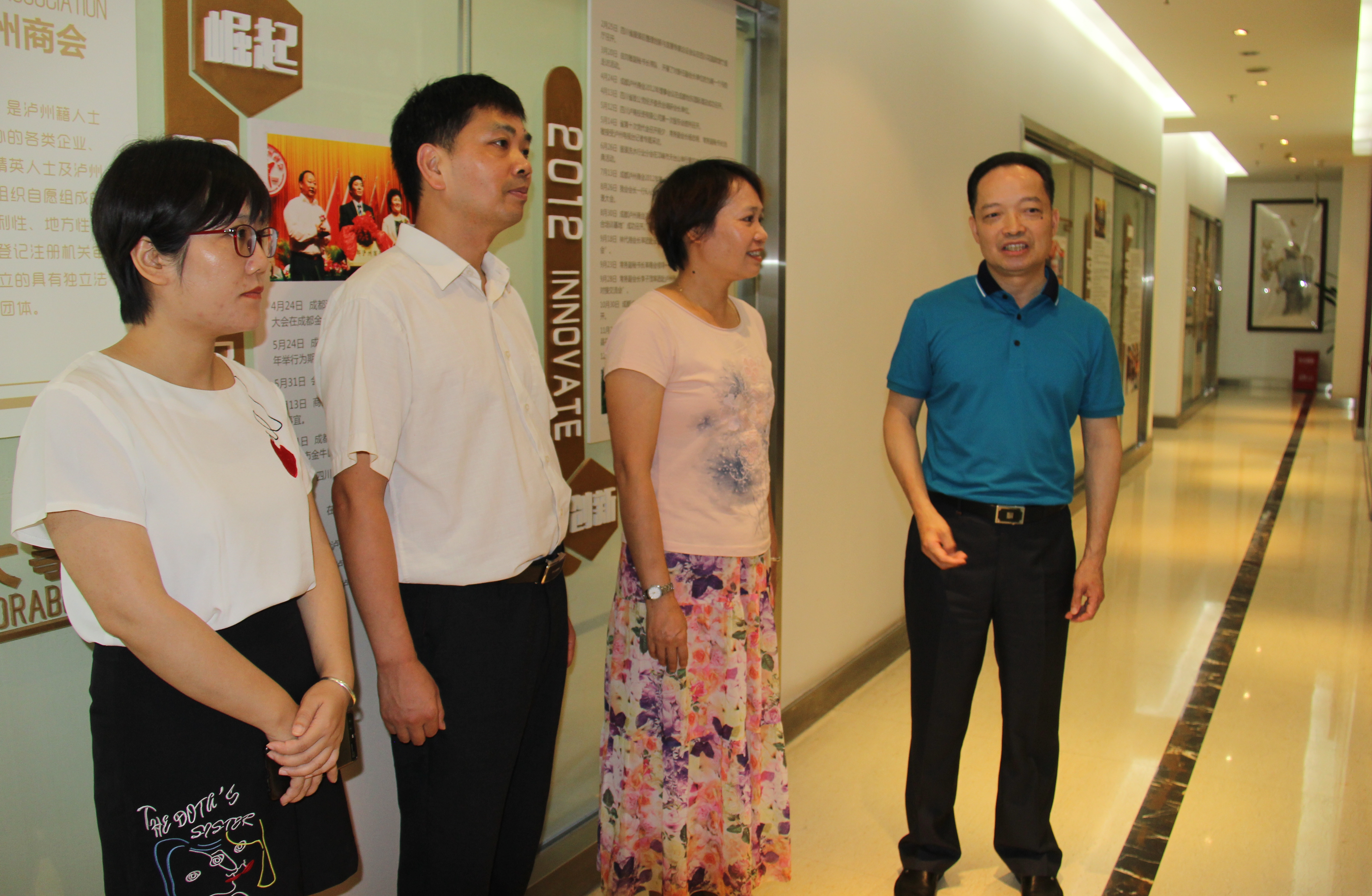 7月26日,南宁市工商联党组成员、副主席、南宁市工商业行业党委书记蔡丽蓉一行在成都市工商联相关部门负责人陪同下到我会考察。我会党委副书记、执行会长赵福全,党委副书记、常务副会长杨秀春,党委纪检书记、常务副会长屈景泉、副秘书王泽野陪同。