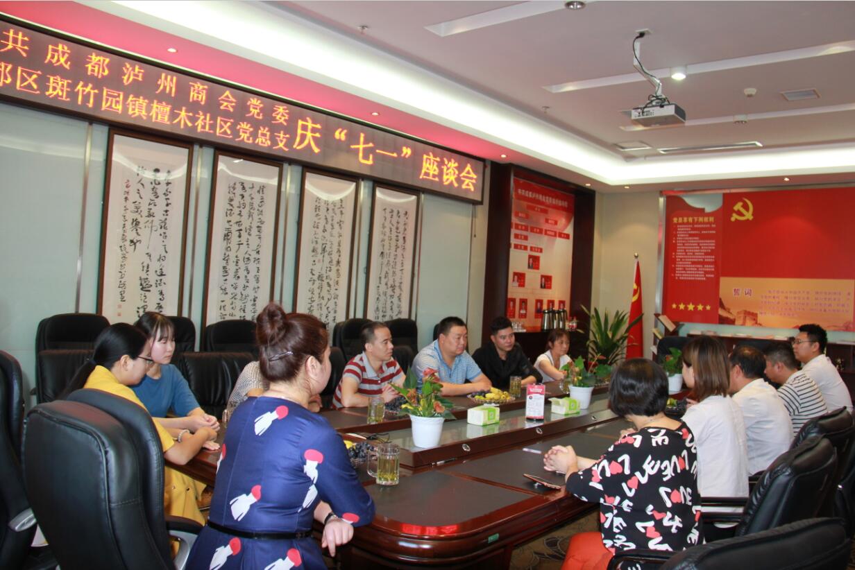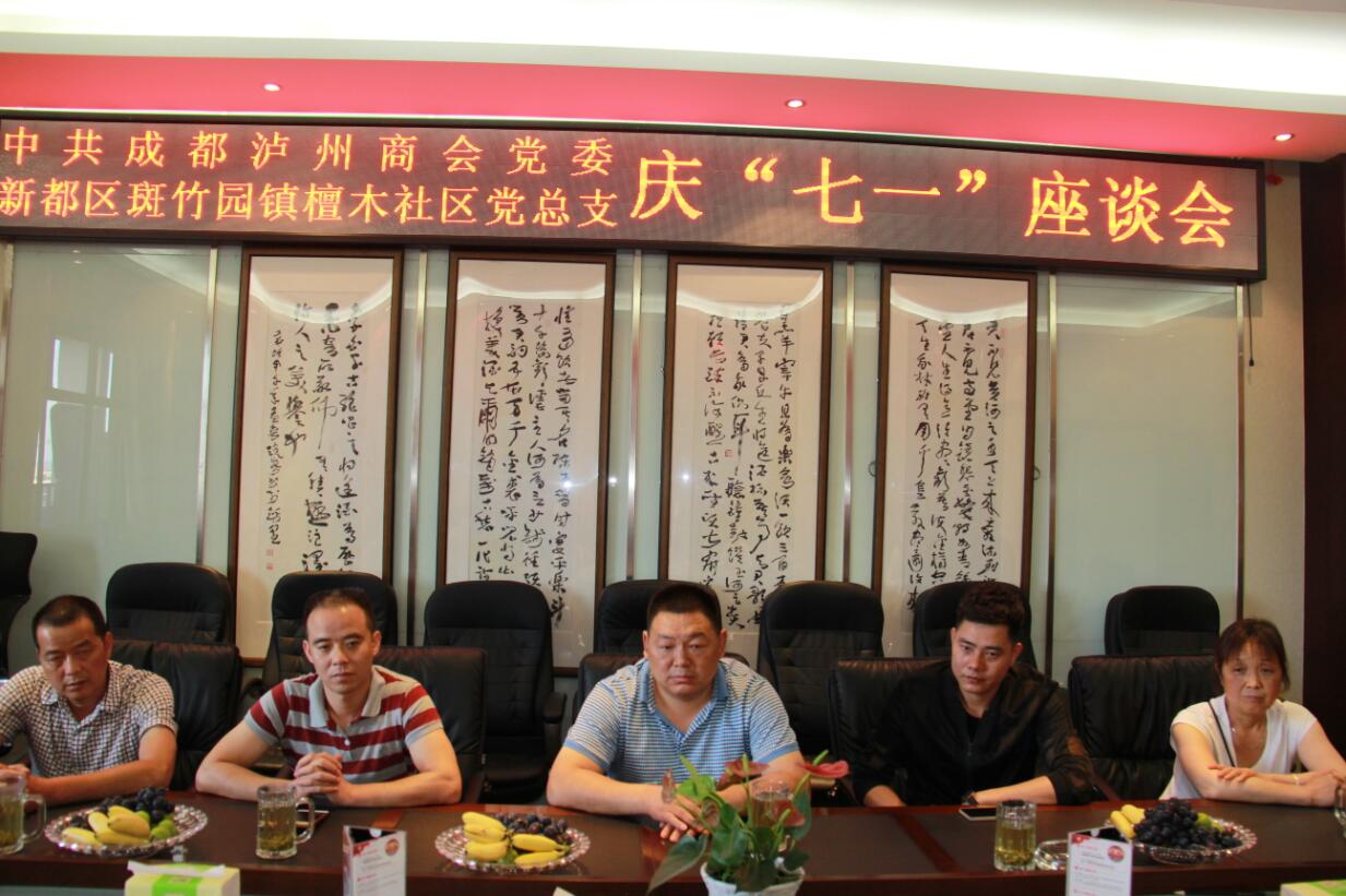 6月8日下午,中共成都泸州商会党委书记、会长李子茂企业党支部所在的新都区斑竹园镇檀木社区党总支到我会参观,并与我会党委举行了庆“七一”交流座谈会。