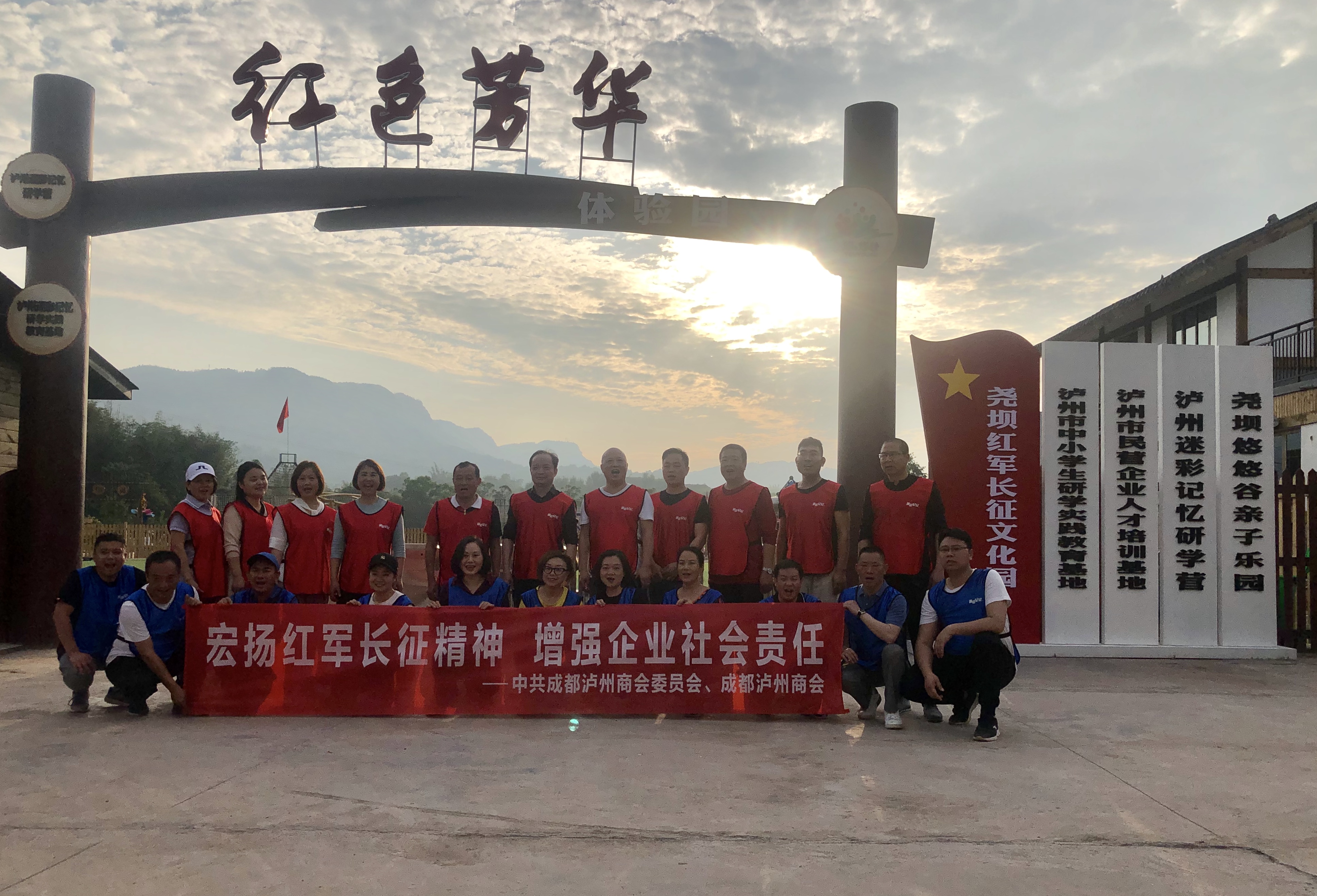 4月16日至17日,中共成都泸州商会委员会、成都泸州商会组织部分会长和党员同志共30余人,分别在泸州合江尧坝、贵州赤水十丈洞大瀑布两地,开展了一次红色文化拓展之旅主题活动。通过此次拓展活动,弘扬了红军长征精神,对树立正确的人生观、价值观,增强企业家社会责任感以及商会的凝聚力、生命力、影响力具有深远的教育意义。