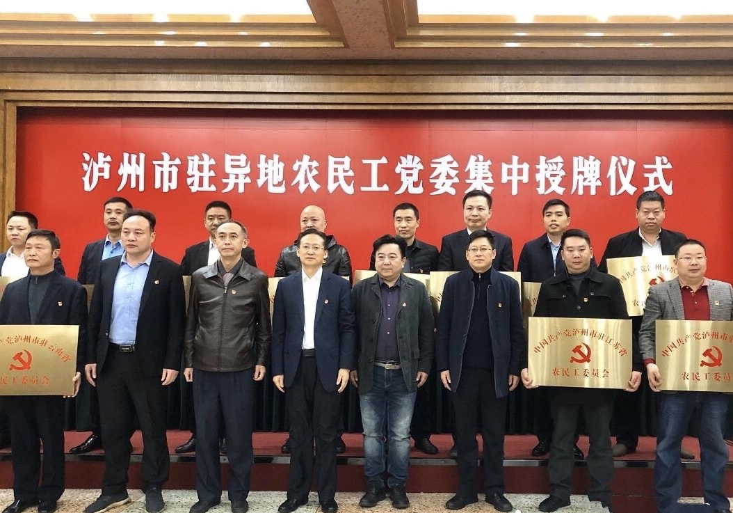 会上宣读了《中共泸州市农民工综合委员会关于在北京、上海等14个省(市)成立泸州市驻异地农民工党委的通知》,对14个异地农民工党委进行了授牌。