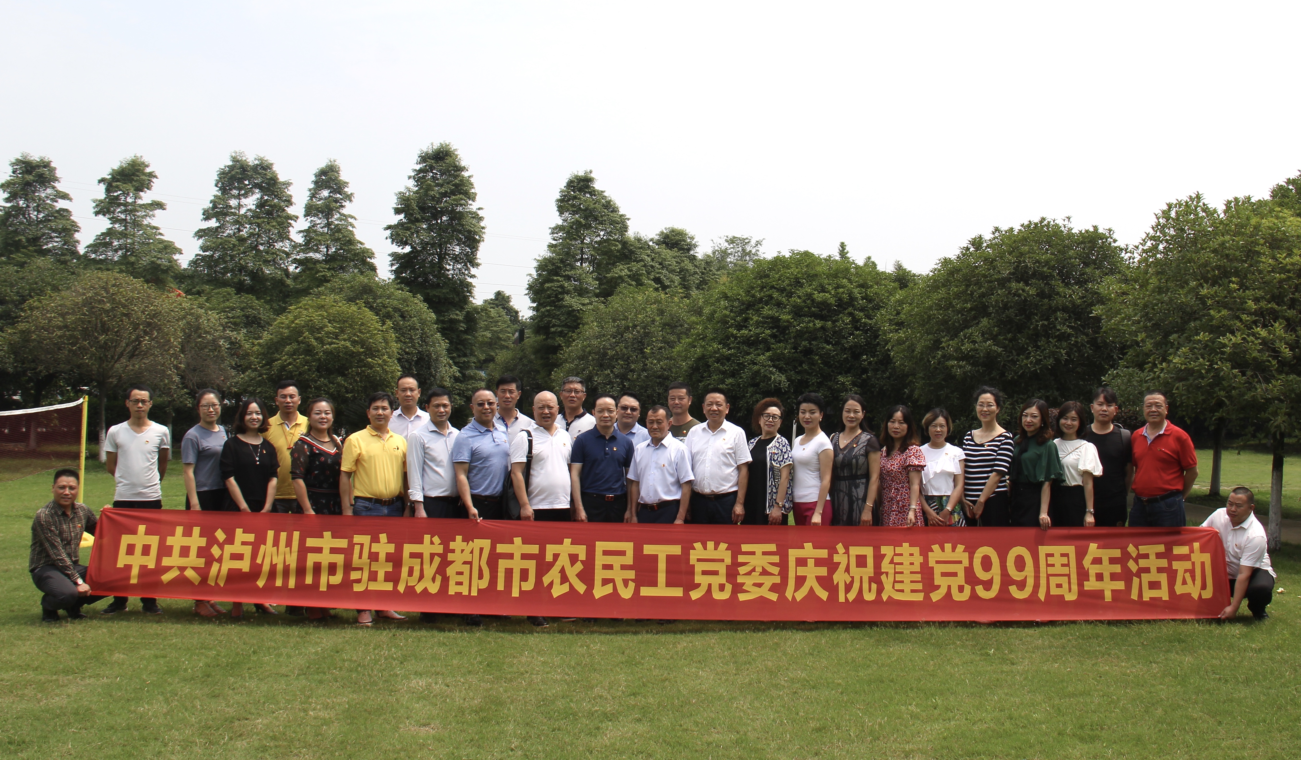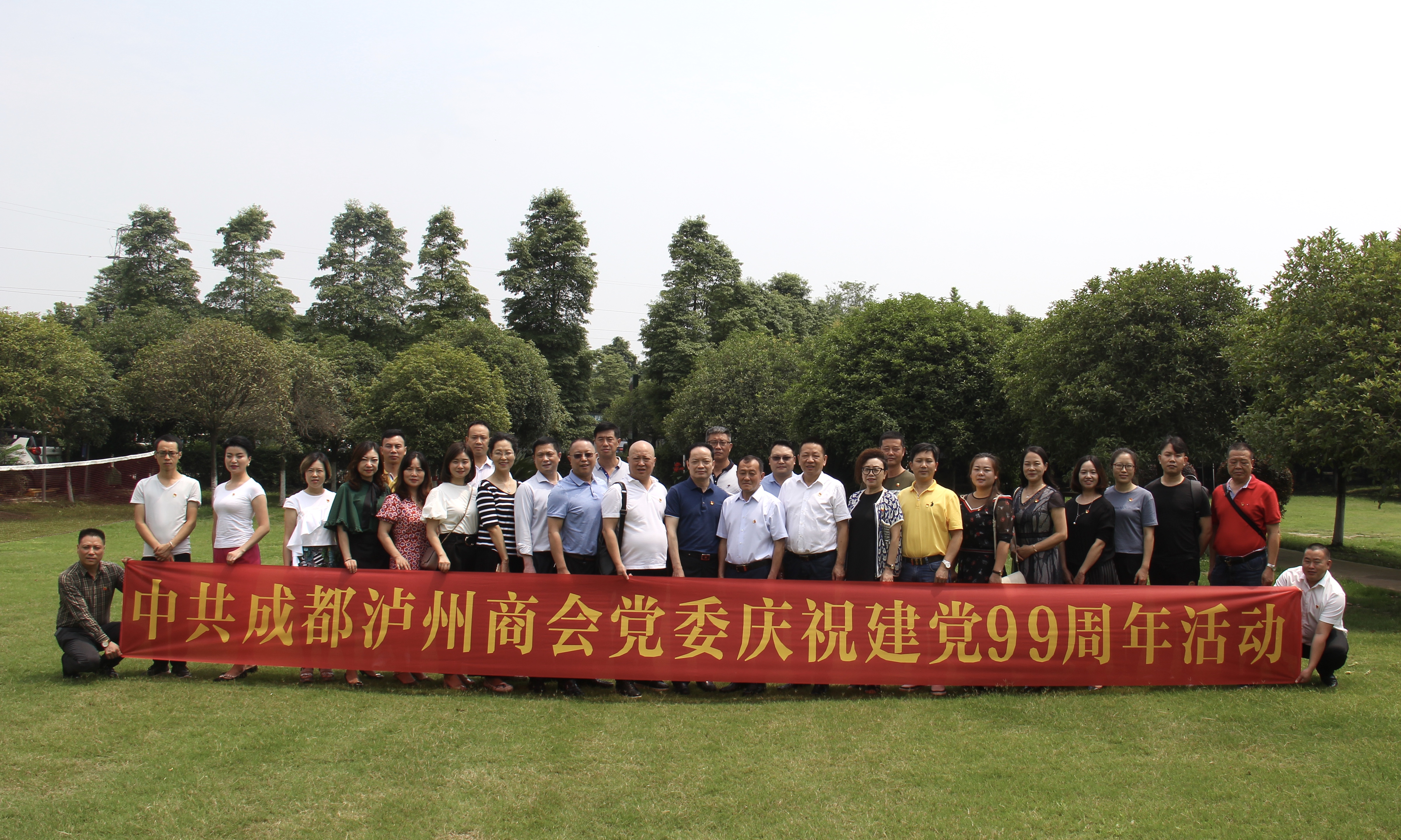 为庆祝中国共产党成立99周年,回顾党的光荣历史,缅怀党的丰功伟绩,增强党员党性意识,扎实做好“不忘初心,牢记使命”主题教育活动。6月29日,中共成都泸州商会党委、中共泸州市驻成都市农民工党委在新都沁彩农庄隆重举行庆祝活动。参加活动的有党委书记李子茂,党委副书记赵福全、杨秀春,纪检书记、党办主任、中共泸州市驻成都农民工党总委书记屈景泉,副书记黄强以及党委委员,各支部书记,委员和秘书处40余人。
